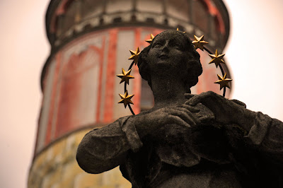 The town of Cesky Krumlov (pronounced Chess-key Croom-Loff) is tucked into the southwest corner of the Czech Republic, about 45 minutes north of the Austrian city of Linz and just 3 hours south of Prague. As always, the moment you cross the border you realize you are no longer in "Western" Europe, but its not really something you can pinpoint exactly, and soon the beautiful green hills, winding river, and medieval castles transport you into a whole new world. It is a very interesting corner of the country, and I'm so glad that we were able to explore it - for while Prague is magical, you get so much of a better feeling for a country by seeing its smaller villages.
